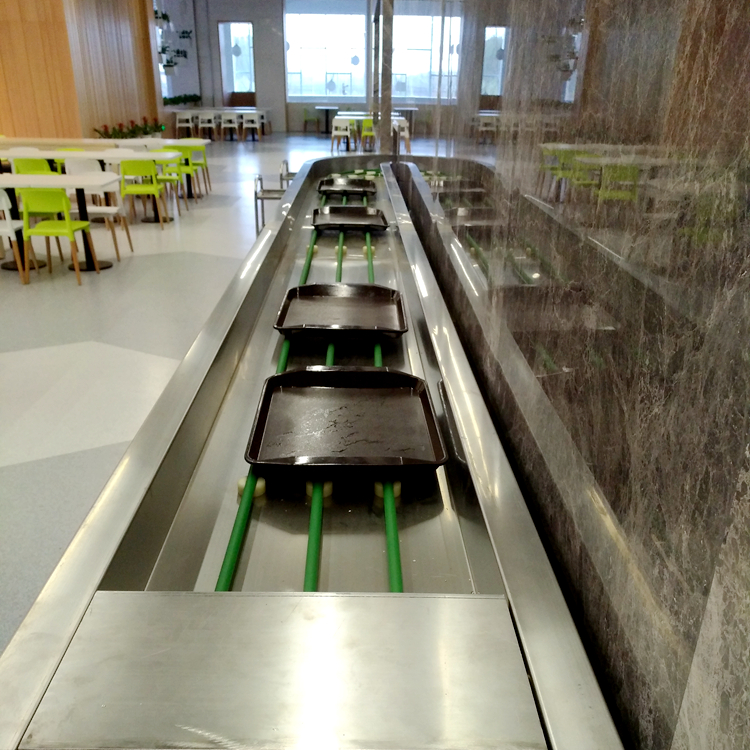 餐具回收傳送帶是對(duì)學(xué)校食堂 企業(yè)餐廳專門定制設(shè)備具有收集速度快,美觀,安全性能,能在短時(shí)間內(nèi),將就餐人員的餐具,從餐廳輸送到廚房內(nèi),輸送能力達(dá)到700盤/小時(shí),可用于不銹鋼餐盤,塑膠餐盤,筷子,碗具,調(diào)羹 勺子等物品的輸送。傳進(jìn)餐盤輸送機(jī)采用全304不銹鋼制作,防銹防腐蝕效果明顯,鏈板采用食品級(jí)耐磨材質(zhì),性價(jià)比極高的一種輸送機(jī)械設(shè)備。