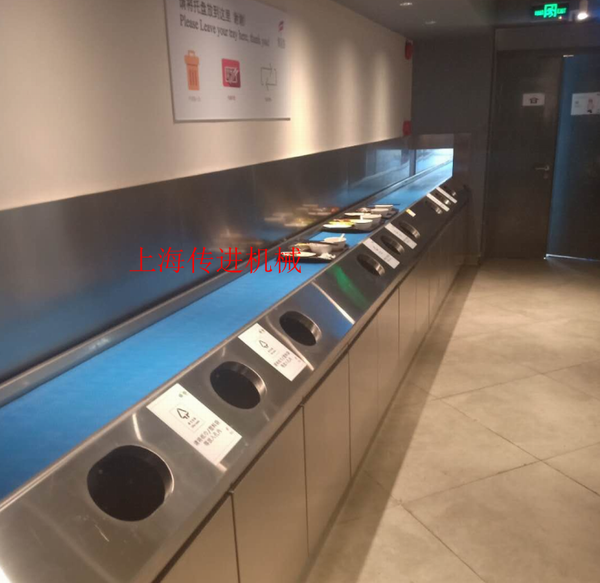 2.傳進牌餐盤輸送機其速度可以調(diào)整,變頻器式調(diào)速,適合各種餐具的回收。